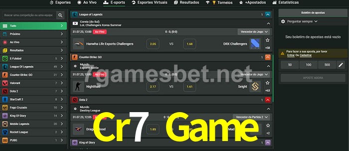O Cr7 Game oferece uma grande seleção de opções de apostas em e-sports com probabilidades competitivas